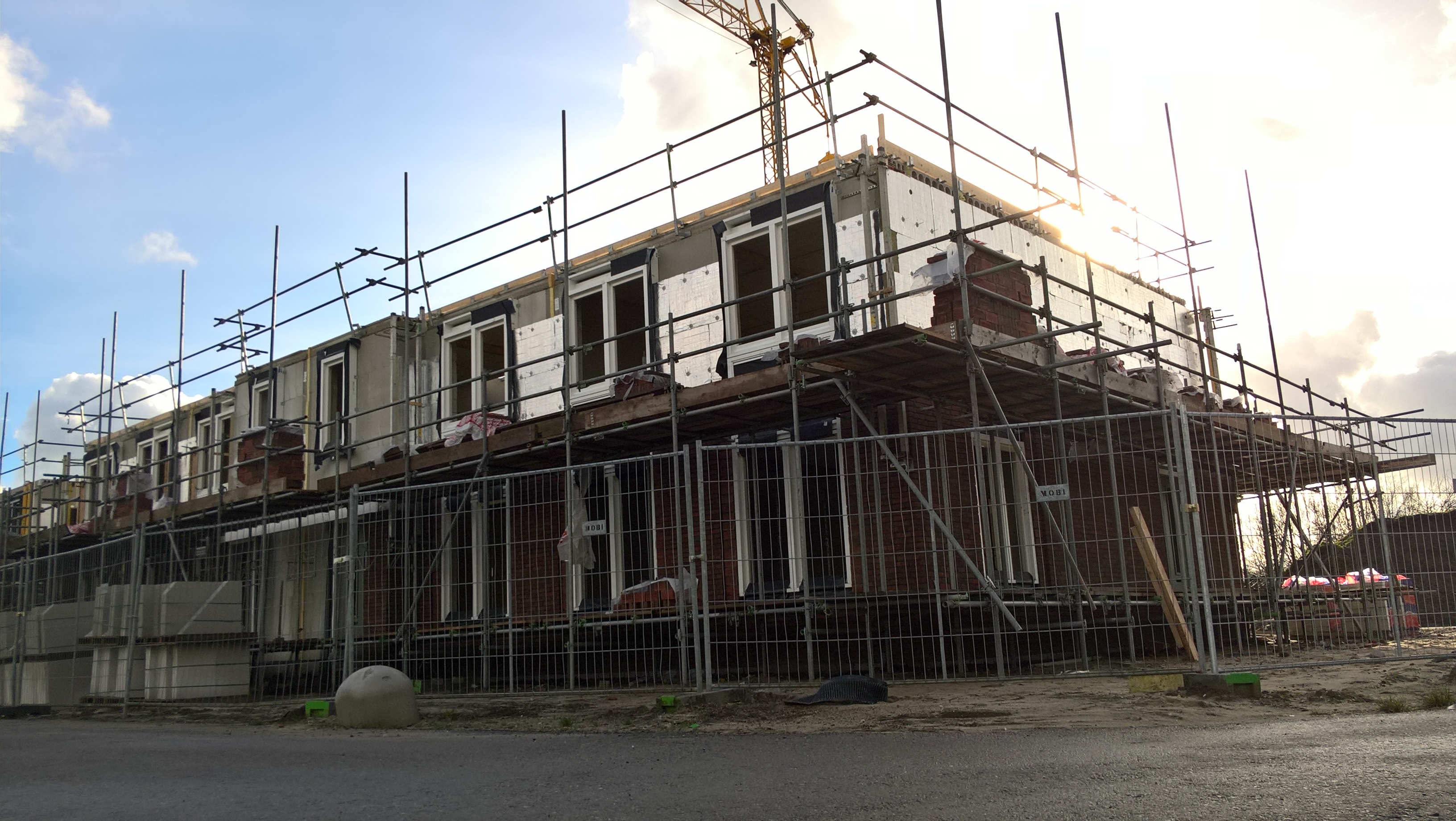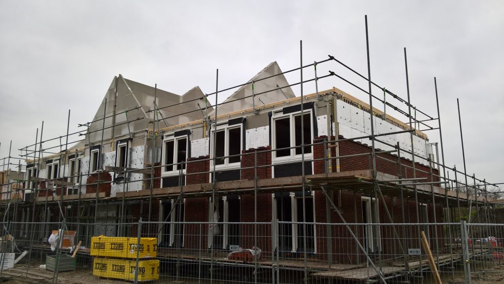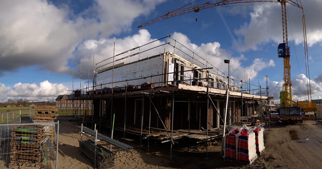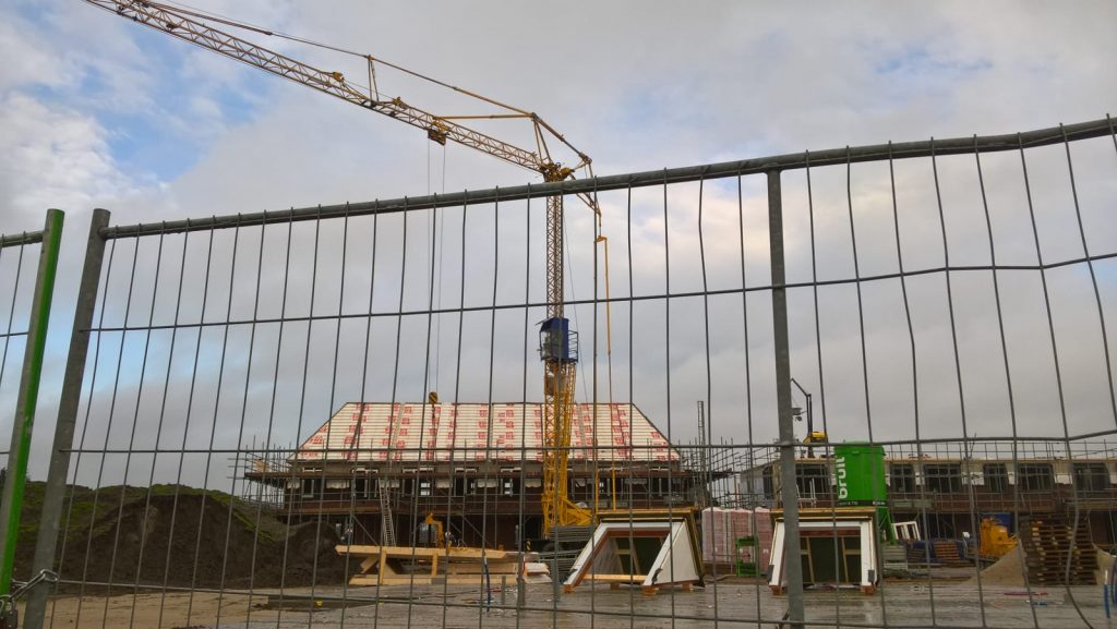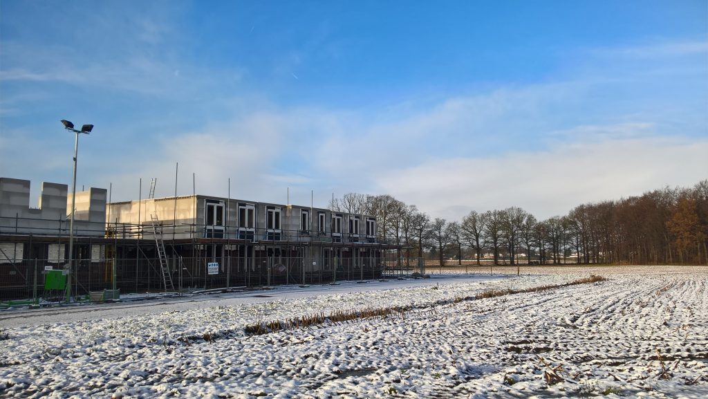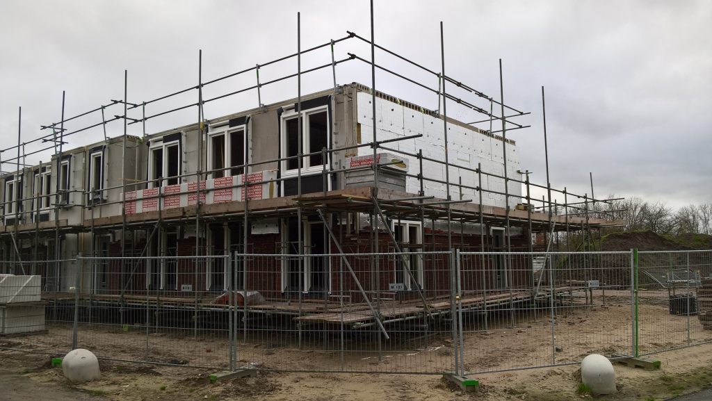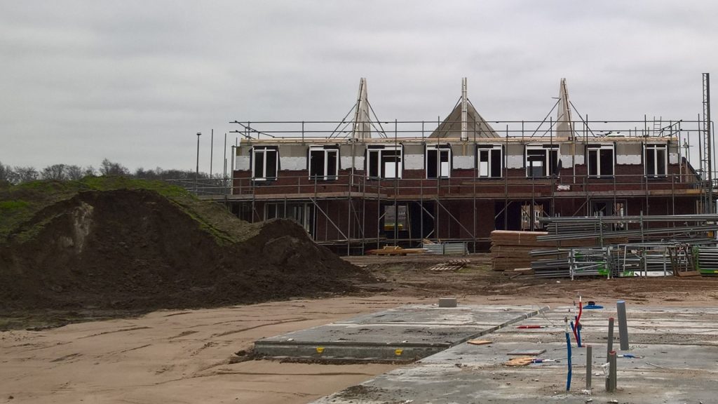 De huurhuizen schuin tegenover zijn al bijna klaar. De rondstruinende toekomstige bewoners verwachten er eind februari al in te mogen.