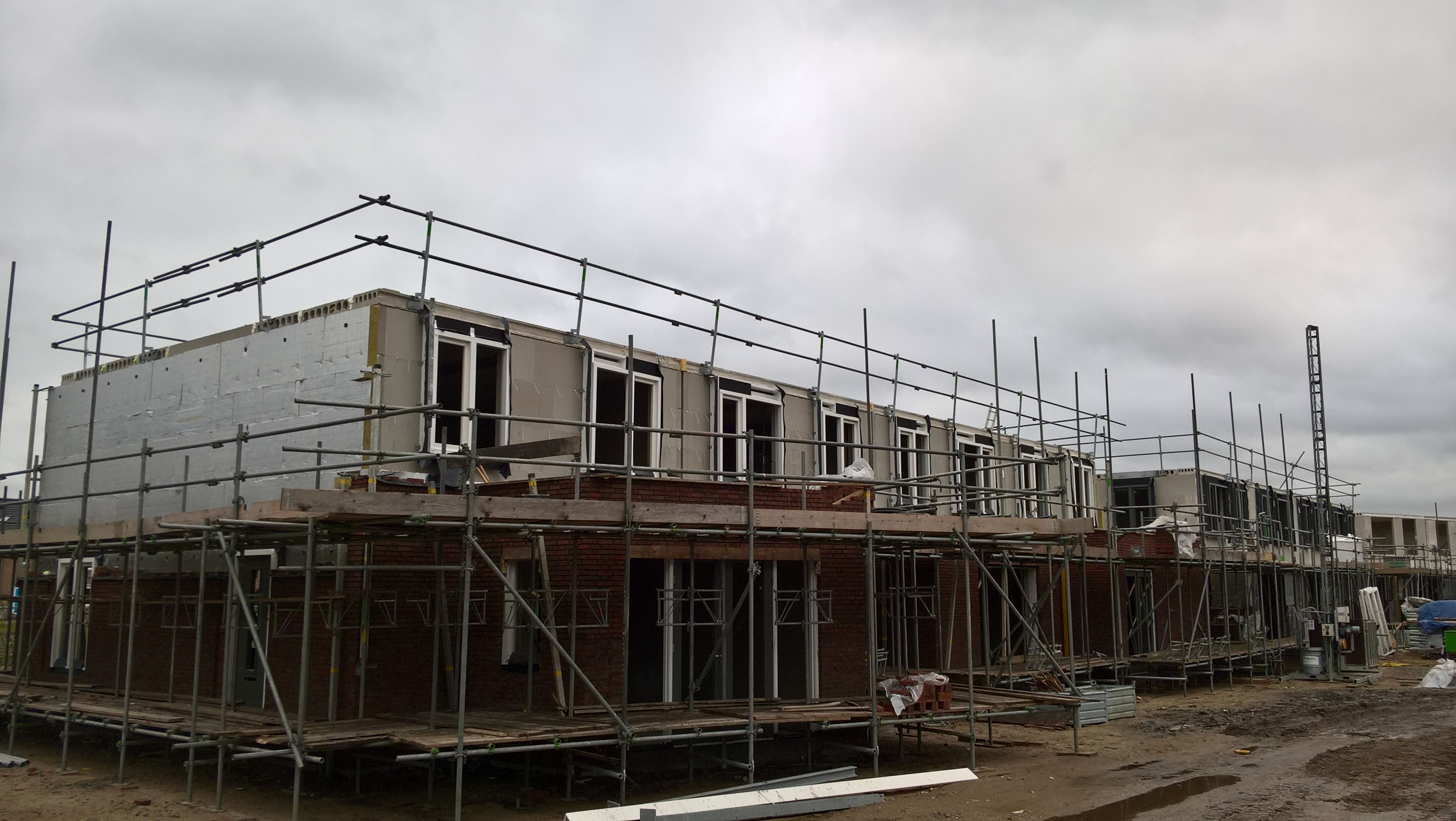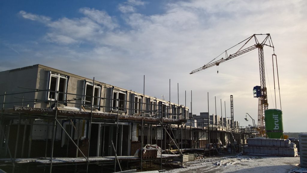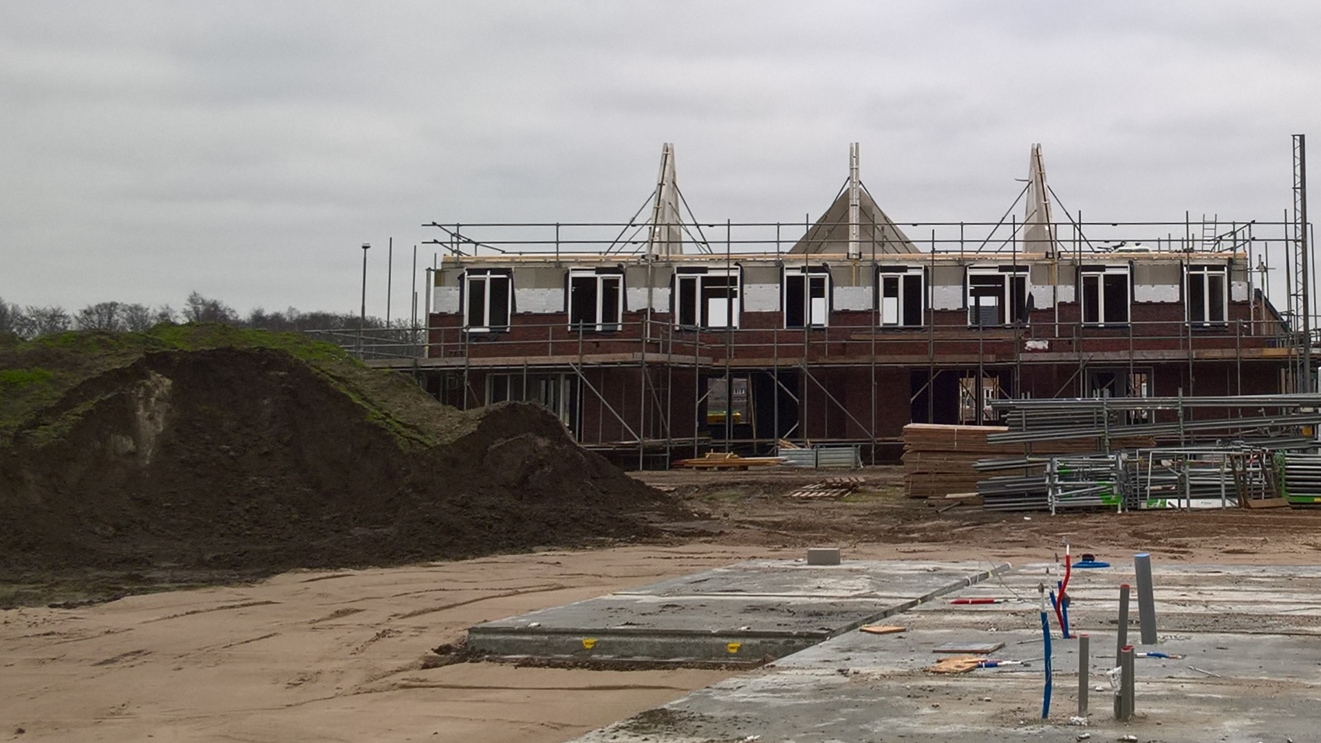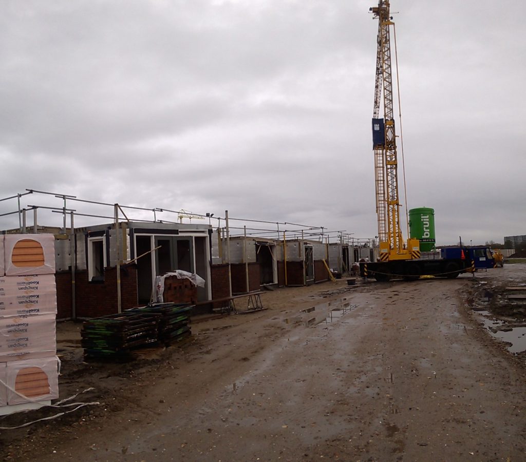 De huurhuizen schuin tegenover zijn al bijna klaar. De rondstruinende toekomstige bewoners verwachten er eind februari al in te mogen.