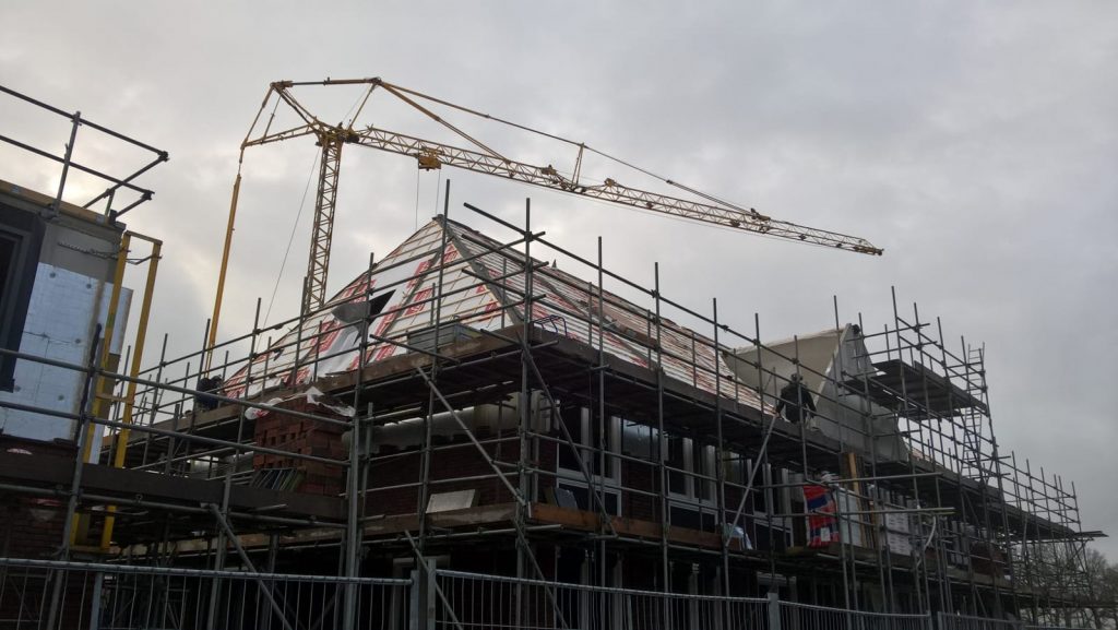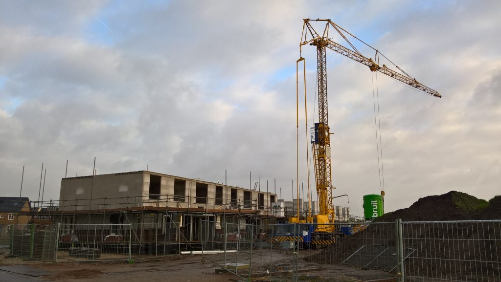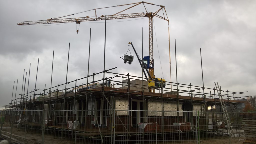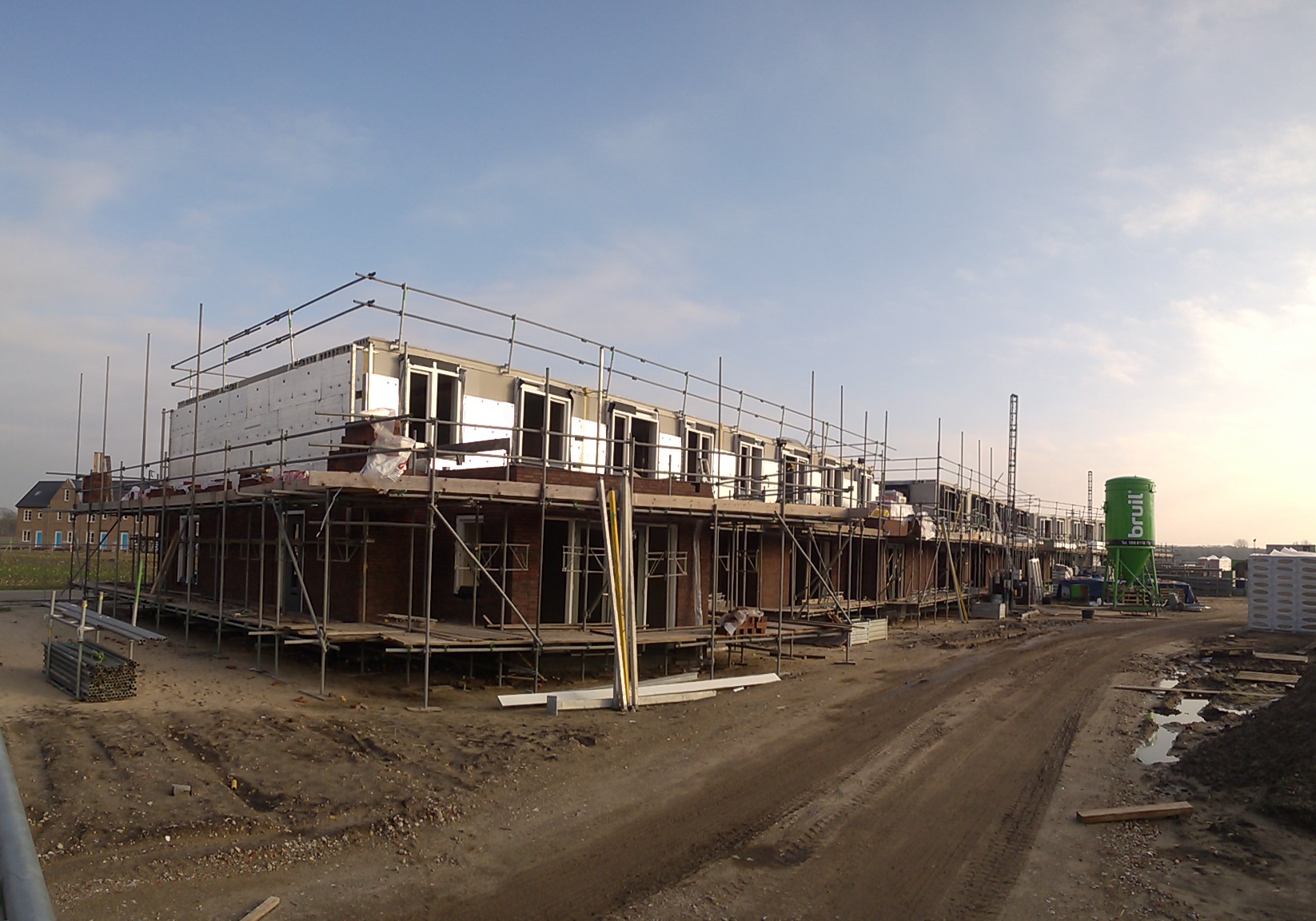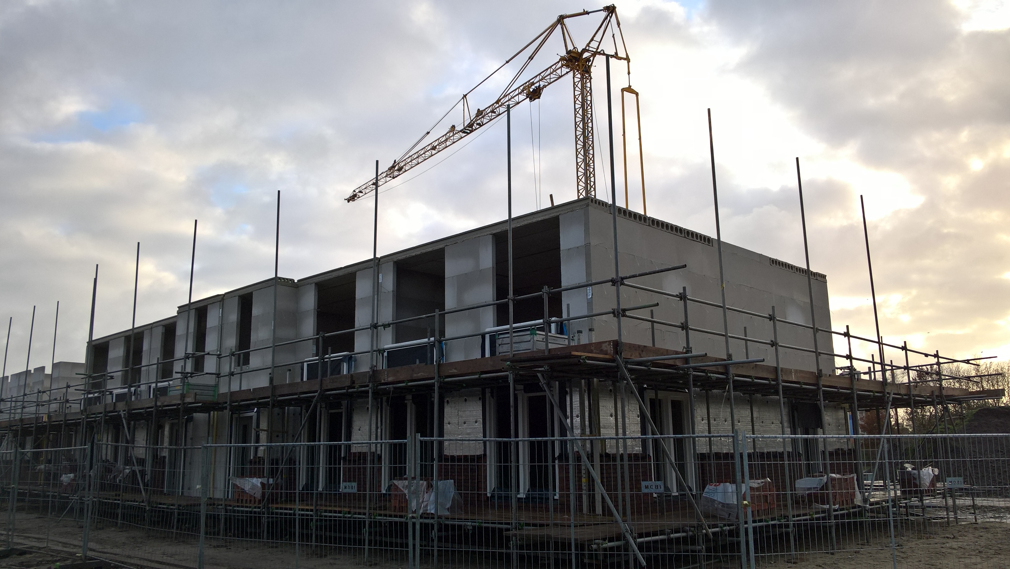 De huurhuizen schuin tegenover zijn al bijna klaar. De rondstruinende toekomstige bewoners verwachten er eind februari al in te mogen.